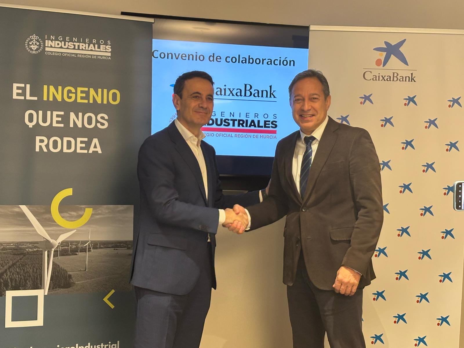 El Colegio Oficial de Ingenieros Industriales de la Región de Murcia y CaixaBank han firmado un convenio de colaboración con el objetivo de ofrecer a los colegiados condiciones preferentes en productos y servicios financieros. El acuerdo fue rubricado por Marcos Mateos, decano del COIIRM, y Antonio Francisco García Rodríguez, director del Centro de Instituciones de la Región de Murcia de CaixaBank.
