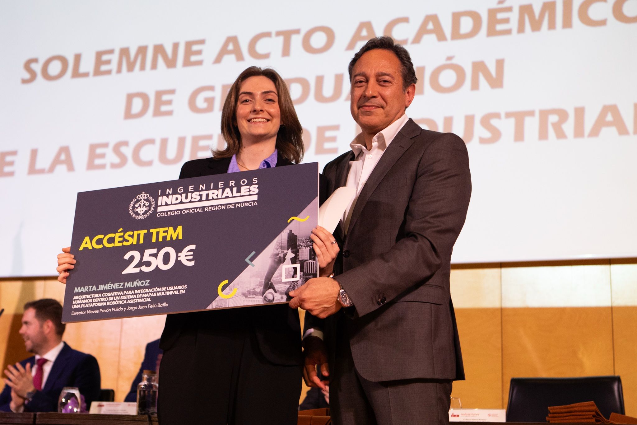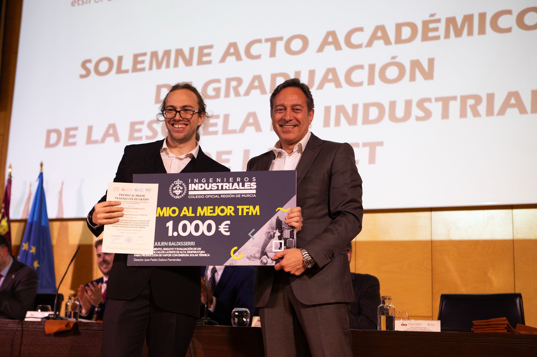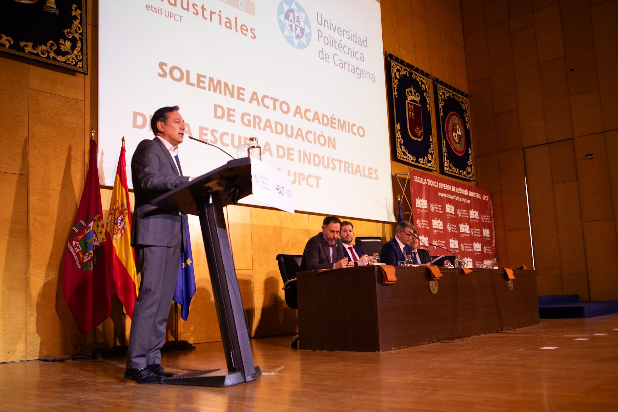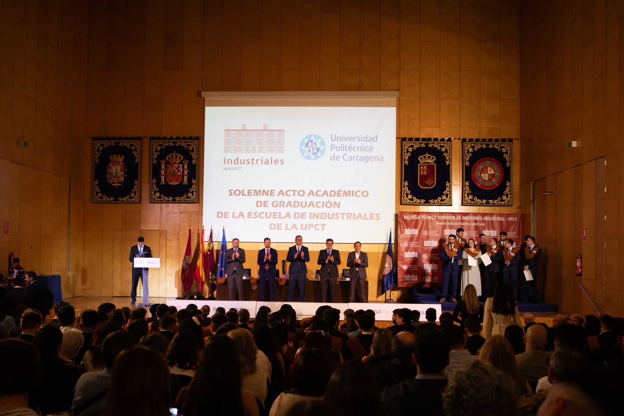El Colegio Oficial de Ingenieros Industriales de la Región de Murcia ha estado presente en los actos de graduación de la Escuela de Ingeniería Industrial de la Universidad Politécnica de Cartagena (UPCT), reafirmando su compromiso con los futuros profesionales de la ingeniería.